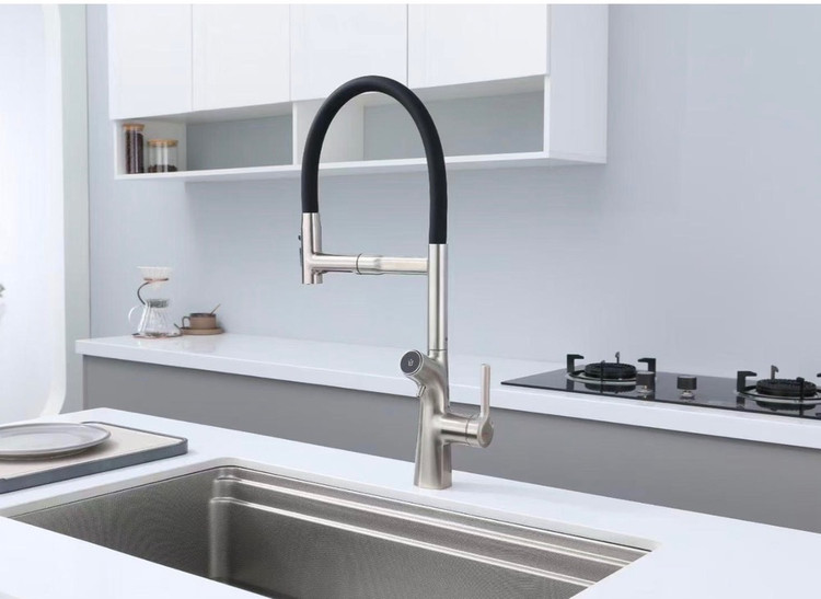 دارای دو خروجی مجزا: یک خروجی ثابت و یک خروجی شلنگدار کشویی برای شستوشوی حرفهایتر.
